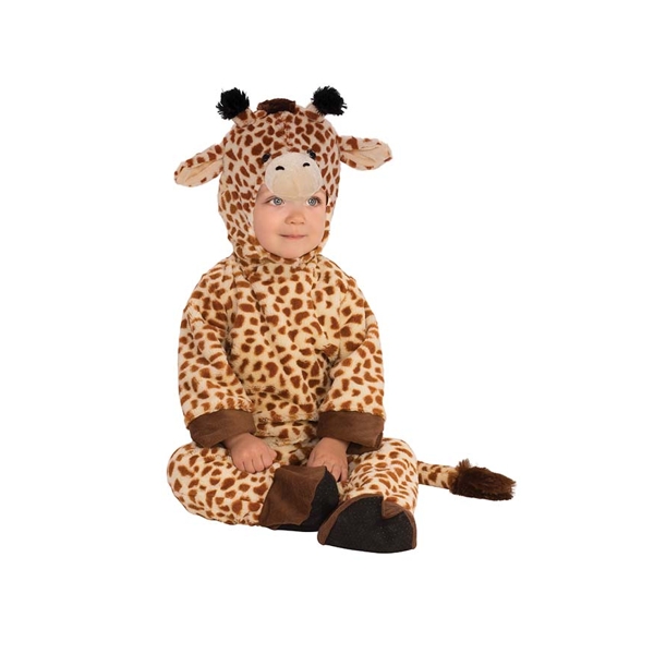 Disfarce de girafa em tecido macio, inclui o gorro com orelhas.