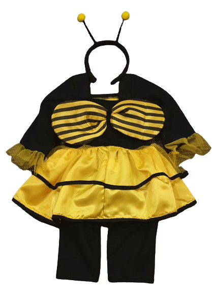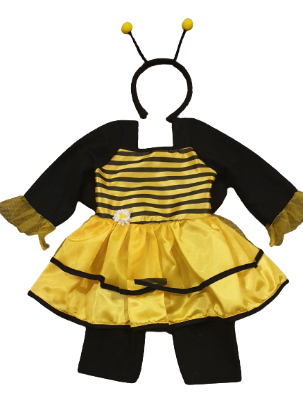 Disfarce de Abelhinha Bebé, composto por fato completo com asas bandolete e leggings.