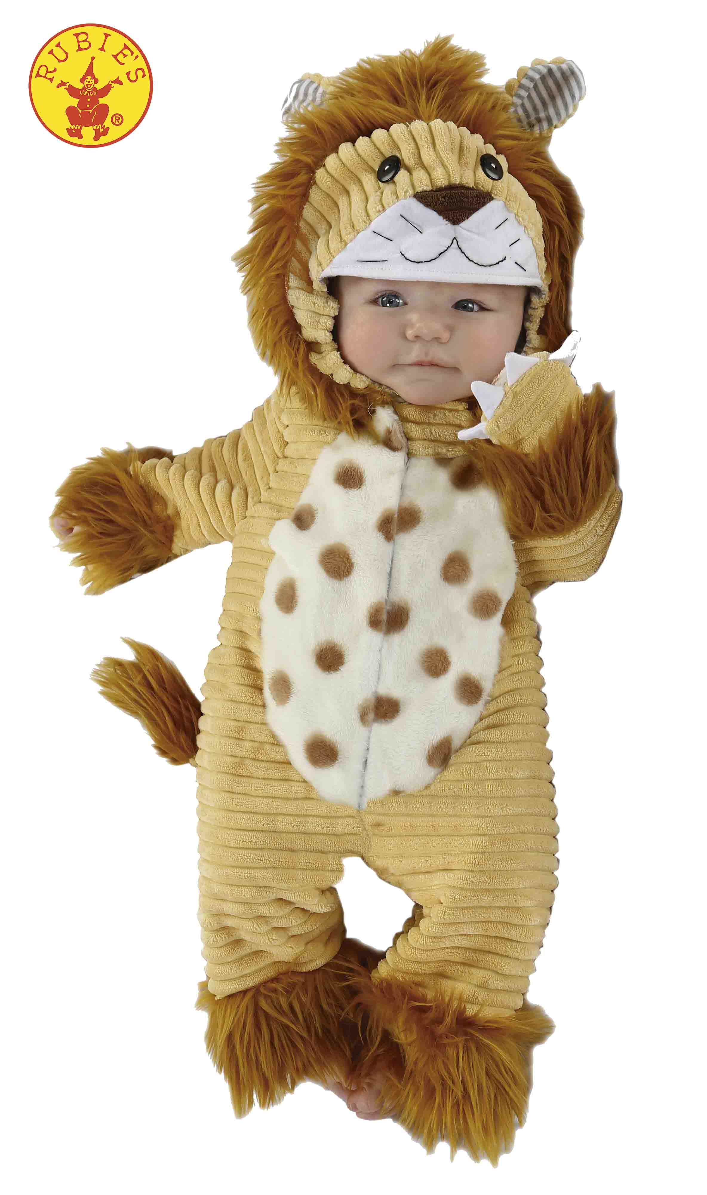 Disfarce leãozinho safari para bébé com fecho na parte da frente para facilitar a muda da fralda.