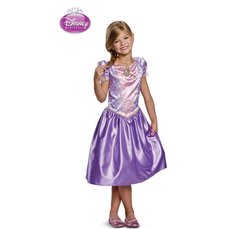 Disfarce da princesa Rapunzel . Vestido com corpo estampado, saia brilhante e saiote.Medalhão com a figura da Rapunzel.