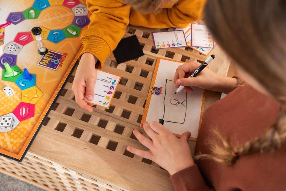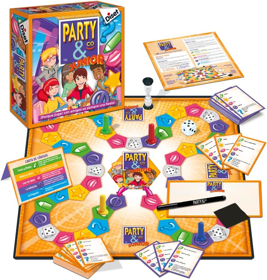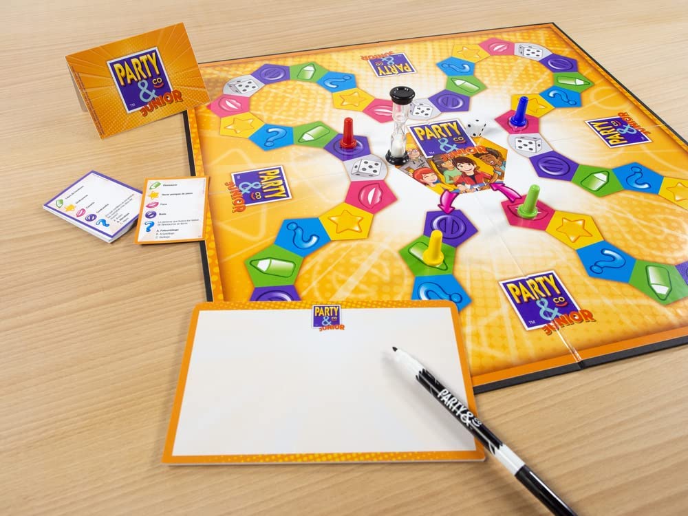 É a versão do jogo de tabuleiro Party & Co para crianças; para jogar, é preciso dividir-se por equipas e passar em diferentes testes; ganhará o primeiro a chegar à caixa final